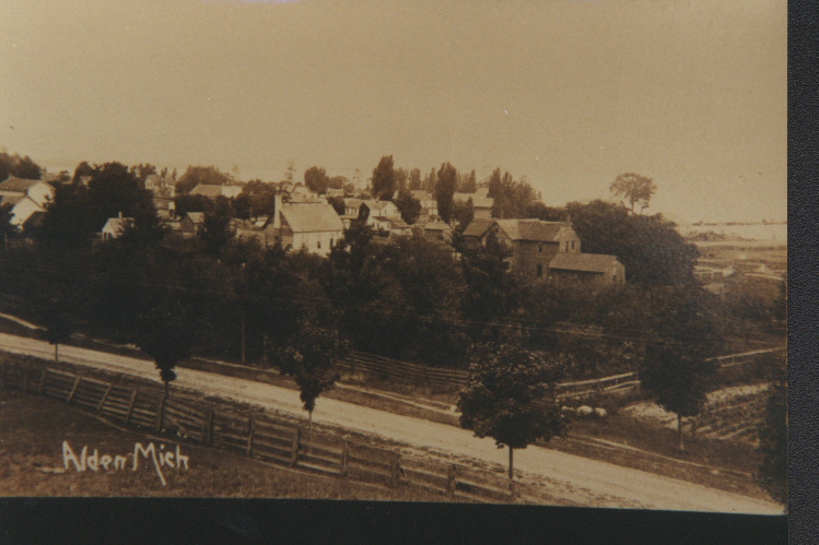 Black & white photo of Alden looking south, Alden, Michigan ca.1900.