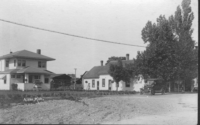 Black and white postcard of Archie Valleau House, Alden, Michigan, 1920~