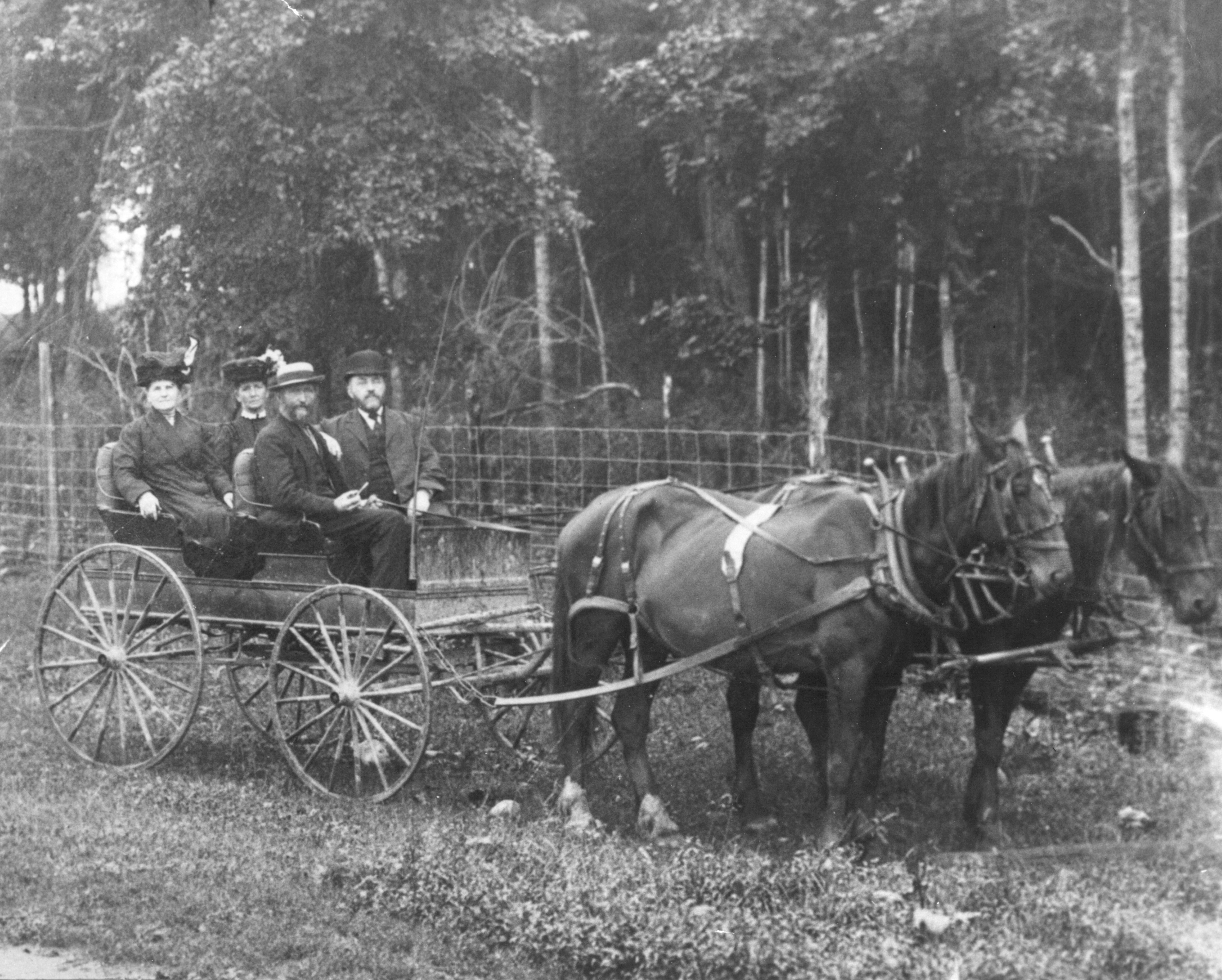 Mr. & Mrs. Frank Hendriks & Prof. G. D. DeJong in a horse drawn carriage