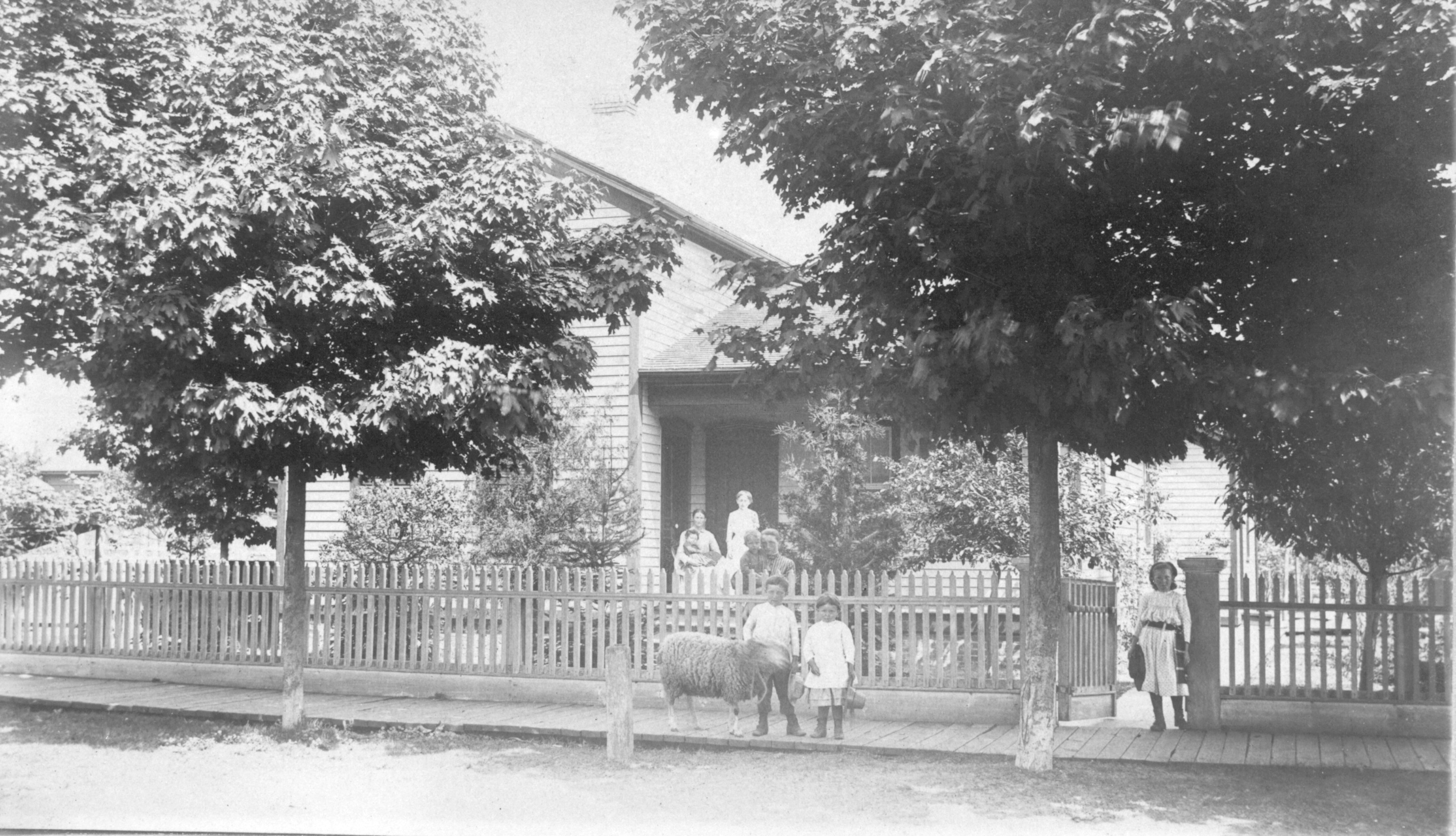 Saugatuck Christian Reformed Church parsonage, children with sheep