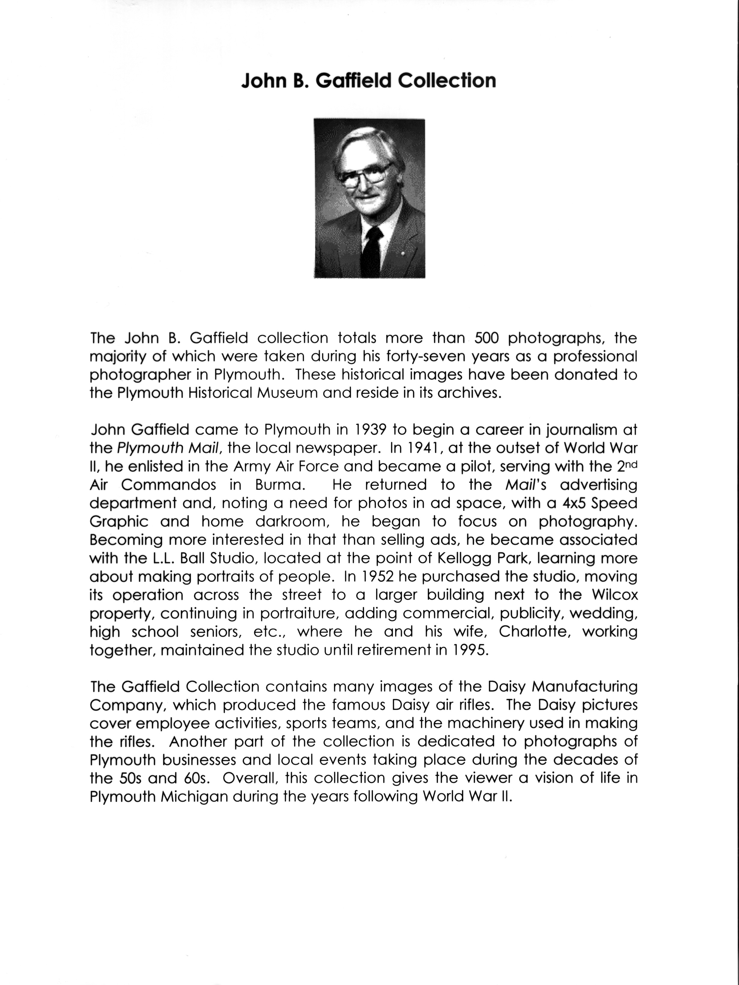 Description of John B. Gaffield Collection including a photograph and biographical information relating to the photographer.