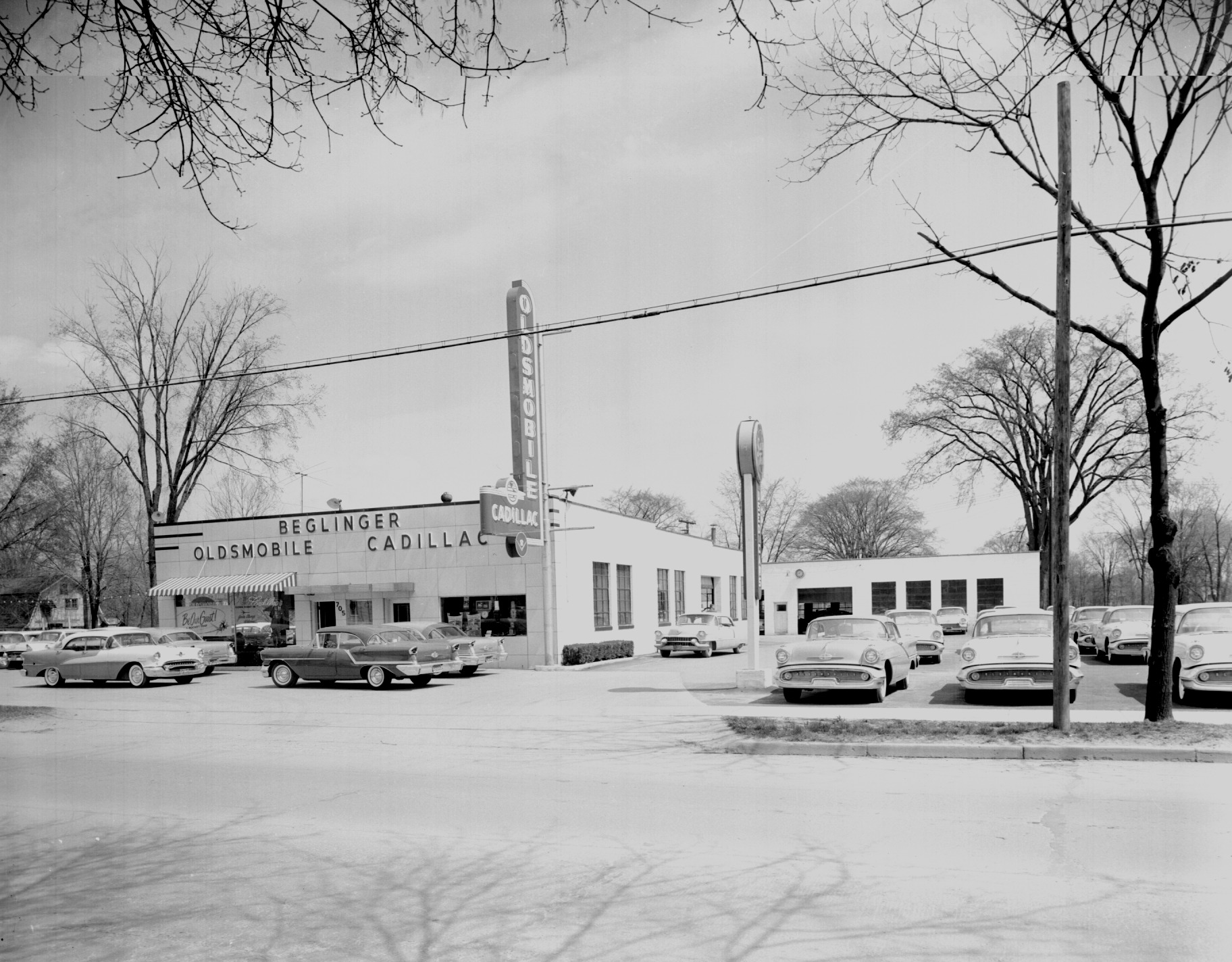 Exterior of Beglinger Oldsmobile at 705 S. Main Street
