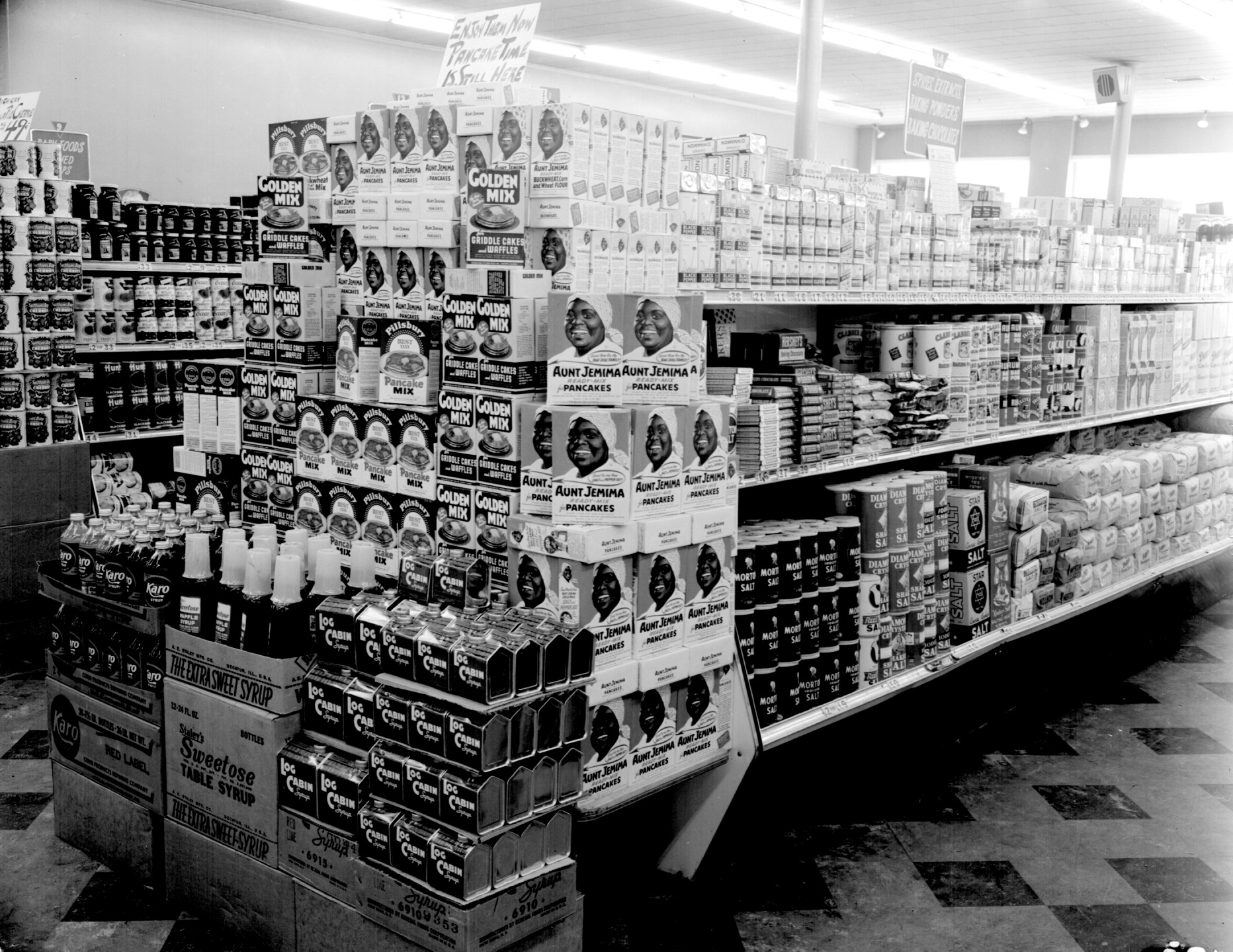 Print made from negative of the interior of Stop & Shop, March 1950. This store was located at 470 Forest Avenue, Plymouth, Michigan.