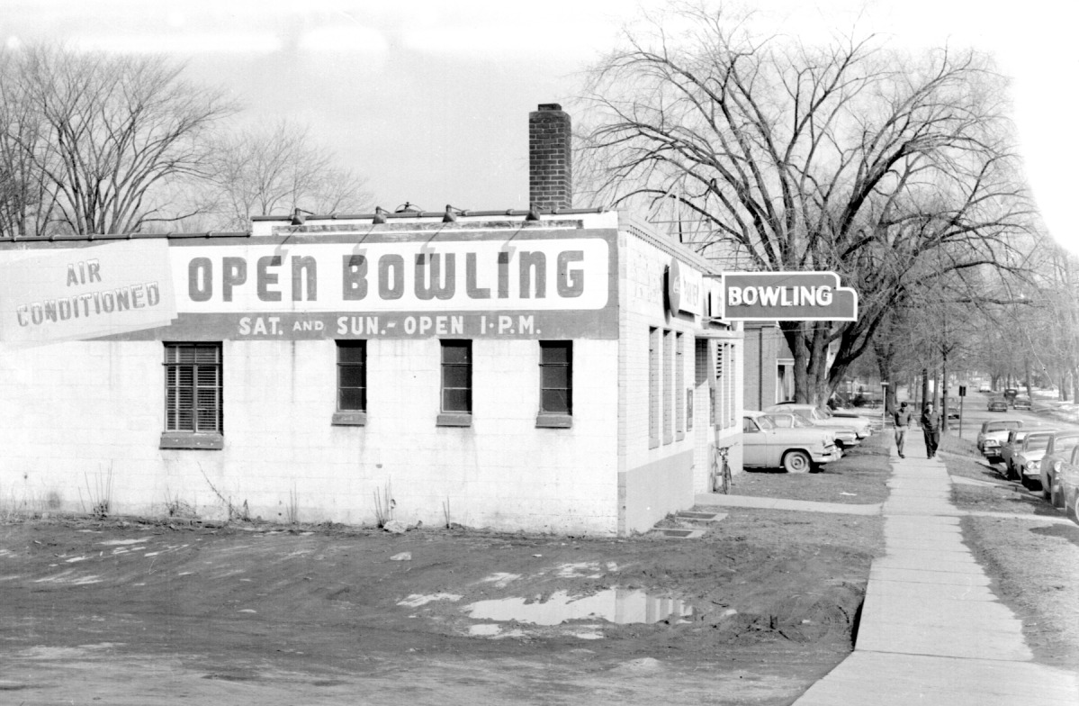 Print made from negative of the Parkview Recreation bowling alley, 584 W. Ann Arbor Trail Plymouth, Michigan in 1949.