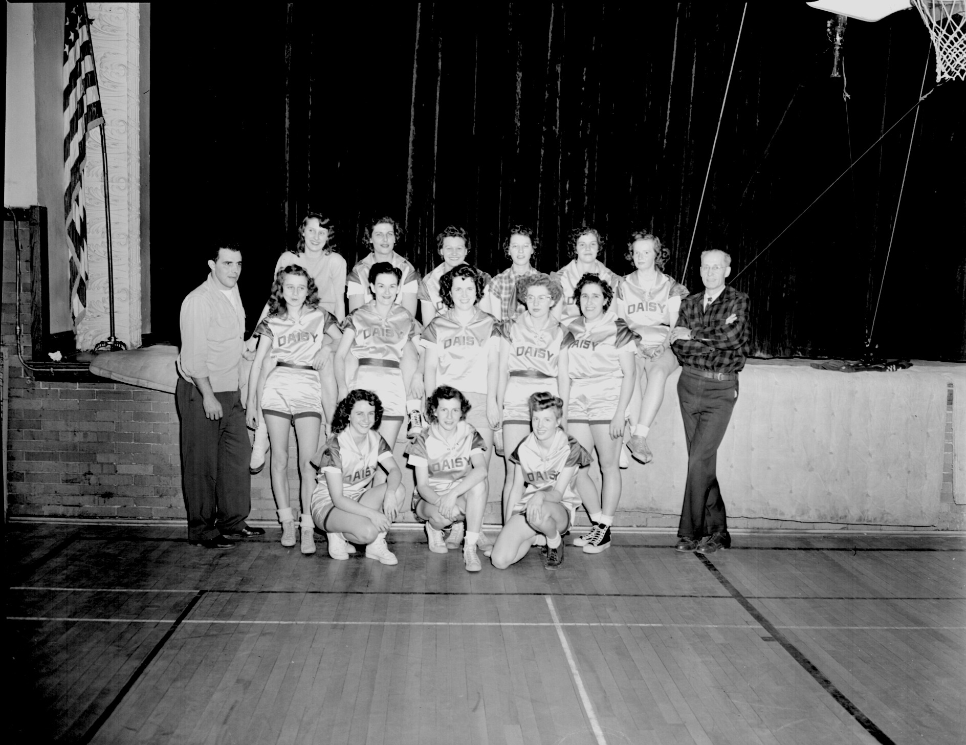 Print made from negative of the Daisy Manufacturing Company girl's basketball team taken in February 1950.