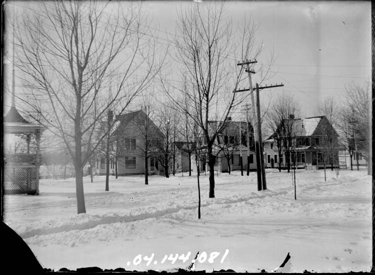 Glass plate negative showing Penniman Avenue (formerly Sutton Street) with the bandstand in Penniman-Allen Park.