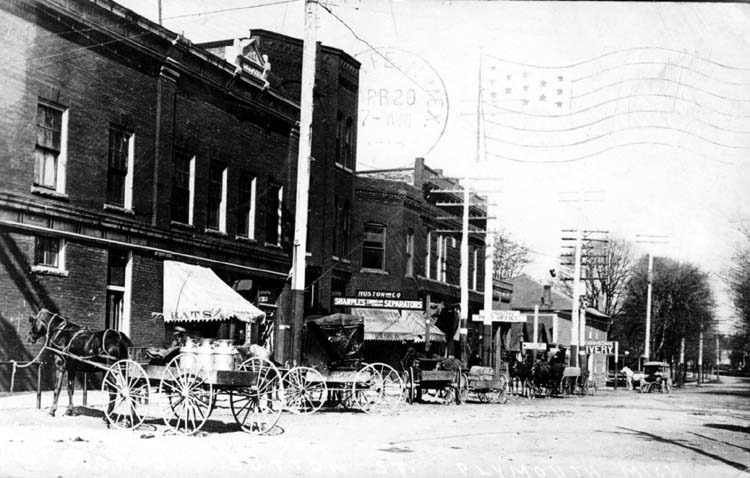 Glass plate negative showing Sutton Street (renamed Penniman Ave. in 1912) looking west toward Robinson's Livery.