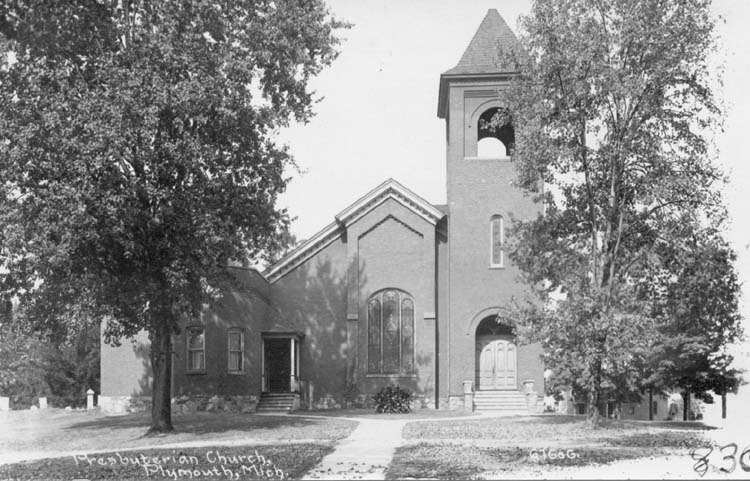 Glass plate negative of the Presbyterian Church built in 1849 and remodelled in 1877 and 1904. Cemetery that is visible to the side was later closed at remains moved to Riverside Cemetery. The church burned in 1936.