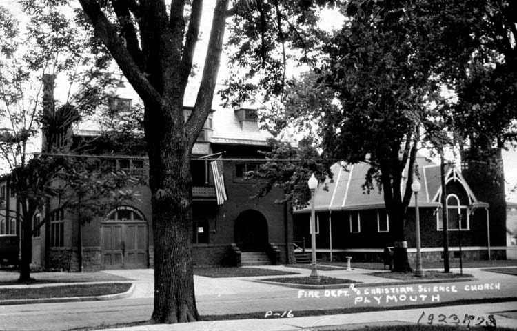 Postcard of the Christian Science Church (dedicated 1903) located on Main Street next to the Village Hall (later Fire Department). The church was torn down to make room for the current City Hall