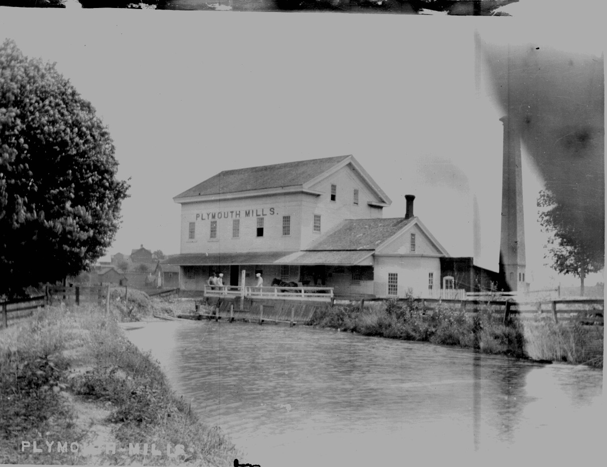 Photograph of Plymouth Mills, built in 1850 by Mr. Rogers. This grist mill was sold to Henry Ford who razed it in 1920, and built in its place one of his village plants.
