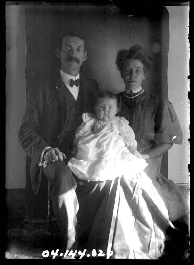 Glass plate negative portrait of the Charles G. Draper family including wife, Satie, and son Merrill.