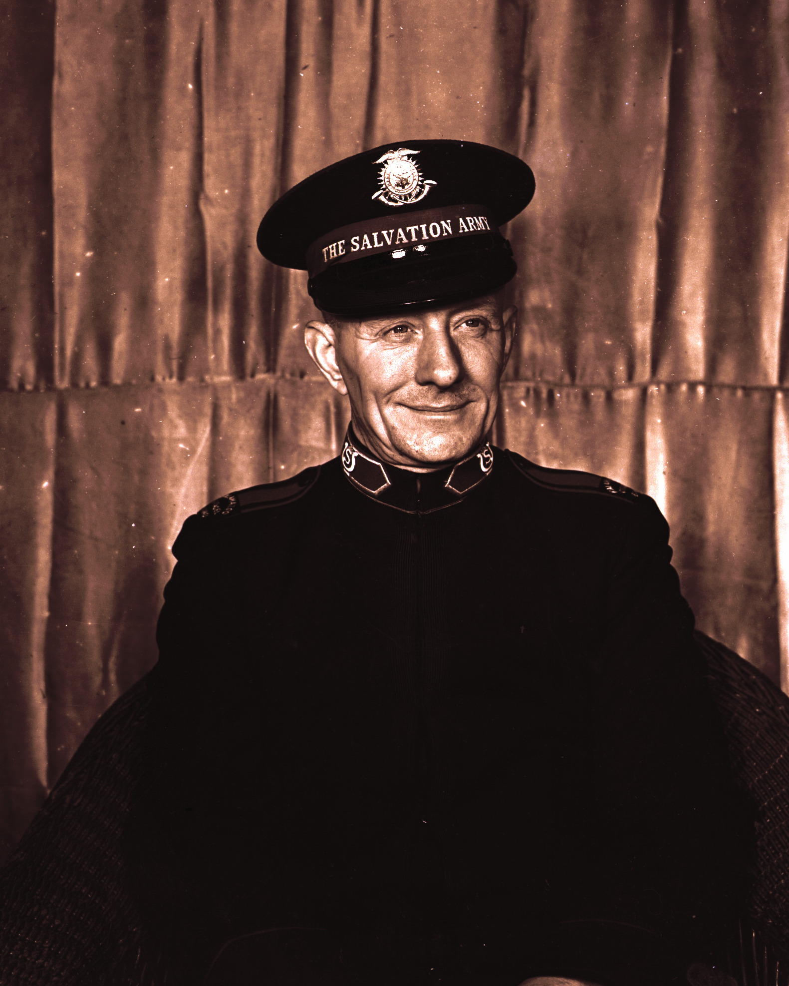 Black and white negative of Mr. Jake Robyn of South John Street in Kalamazoo, Michigan. This is a studio portrait showing Mr. Robyn from the waist up wearing a Salvation Army dress uniform.