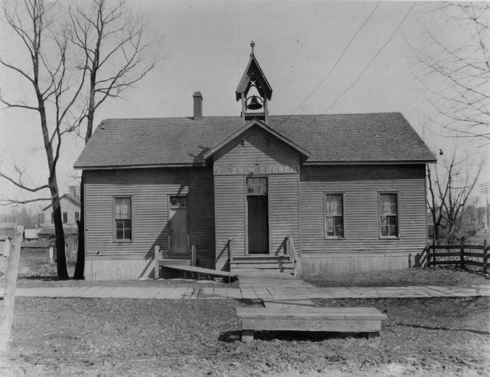 Photo of first home of Pilgrim Congregational Church, Lansing. Originally served as the first Larch Street School.