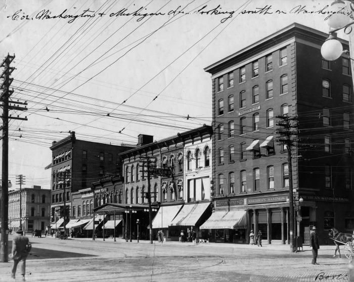 View of Michigan and Washington Avenues, Southwest corner, Lansing