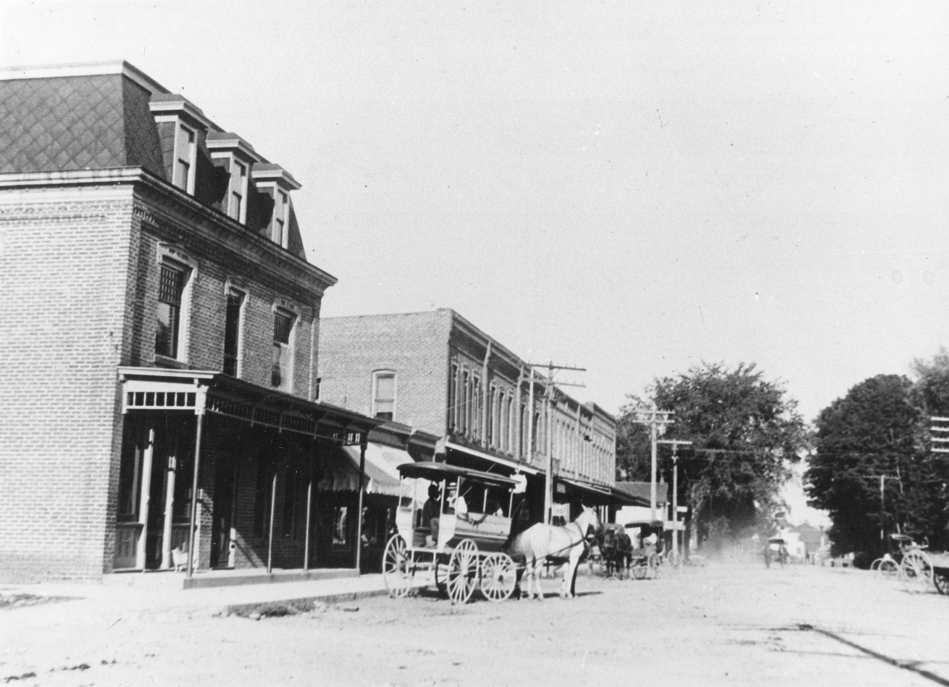 Photograph of the Hurst House & Wagon that Meets the Trains, located on the Northeast corner of Clinton & Main Streets.