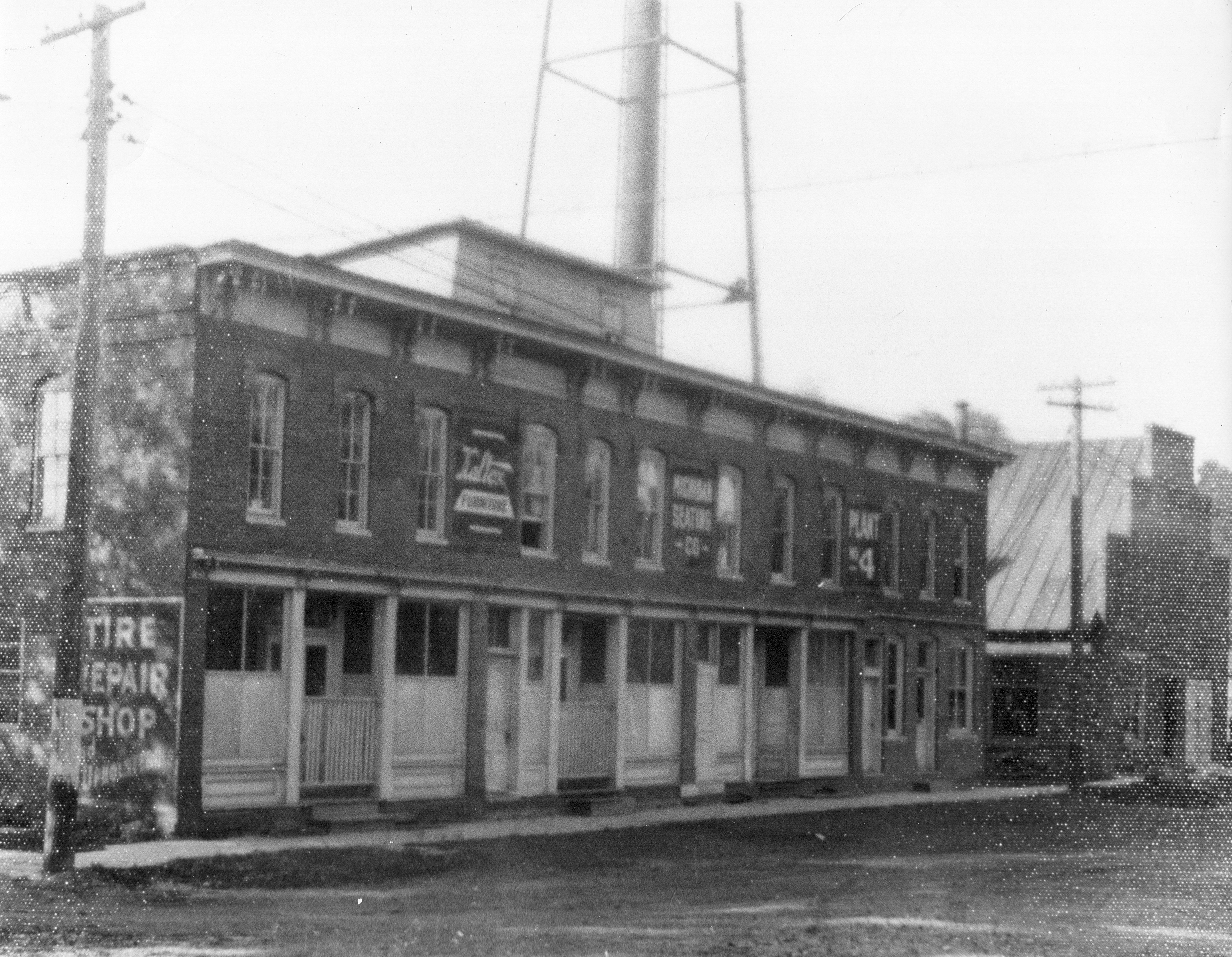 Photograph of the Michigan Seating Co. located at the SW corner of Center and Elizabeth Sts. This building was built by Elias Clark as his mill and Mrs. Clark had a bakery in the west end.