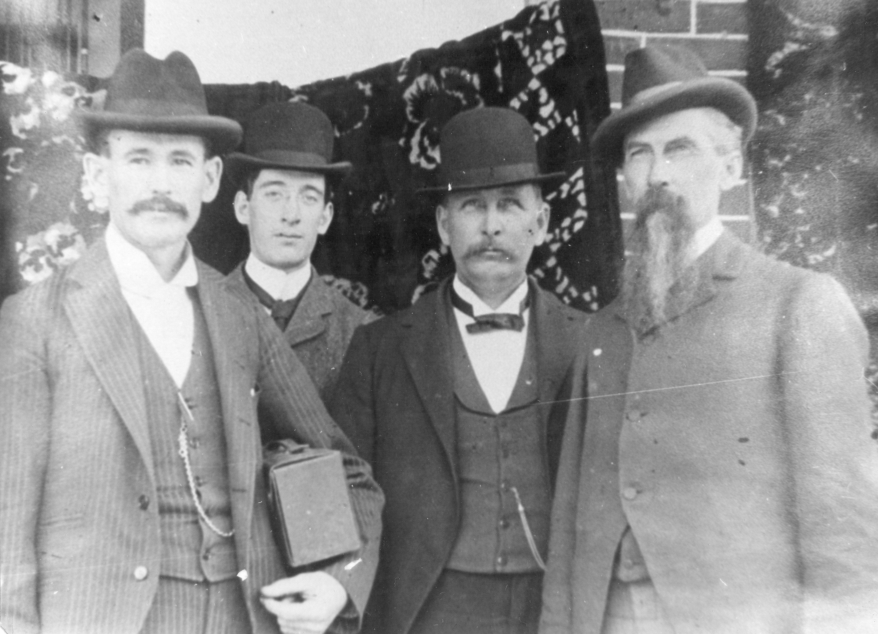 Photograph of four Stockbridge doctors identified as Christopher Brogan, H. Duane Brown, G.A. Rowe, Herman Brown.