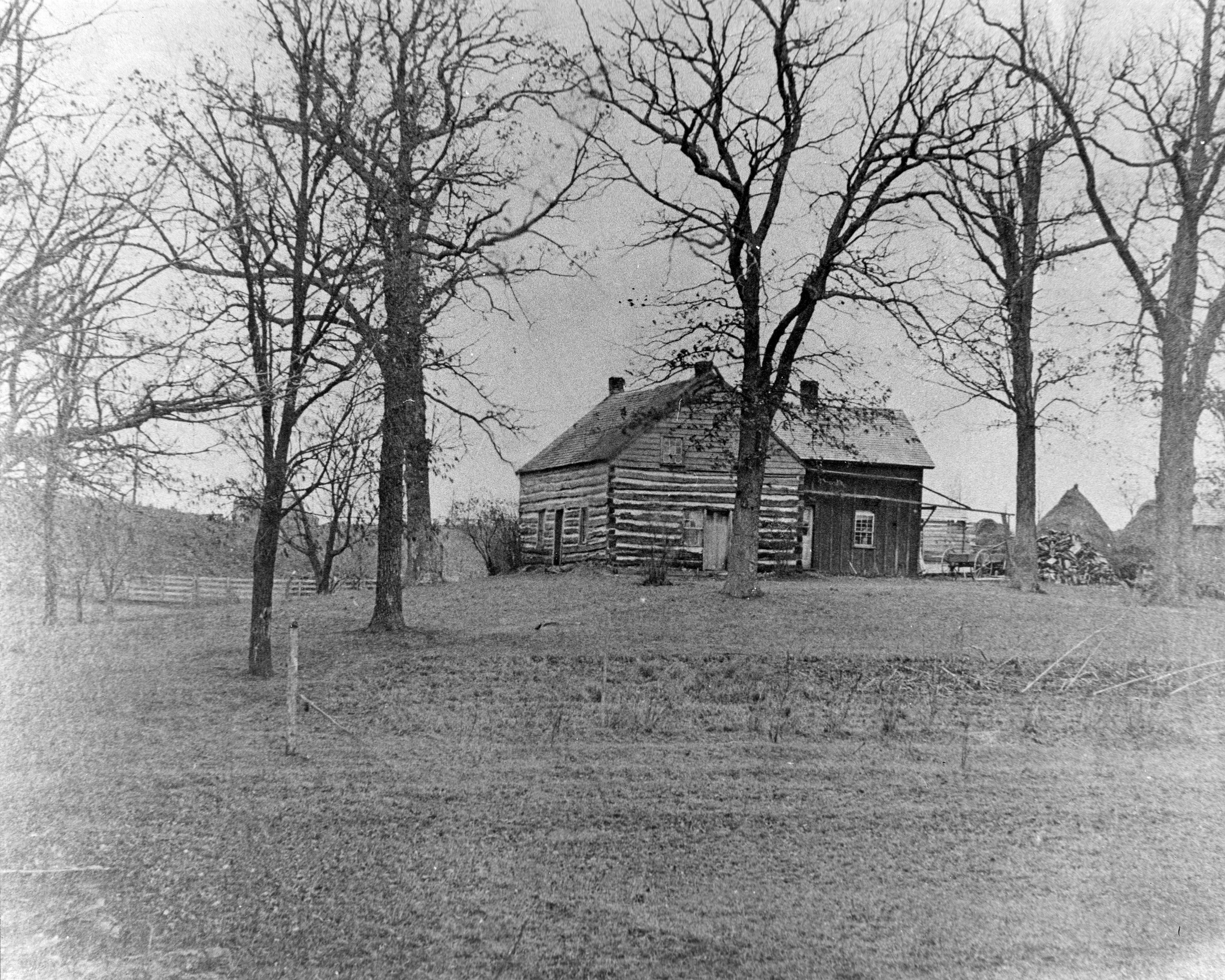 Photograph of a log cabin home circa 1880. Photo was donated by W.H. Tite, Chelsea.