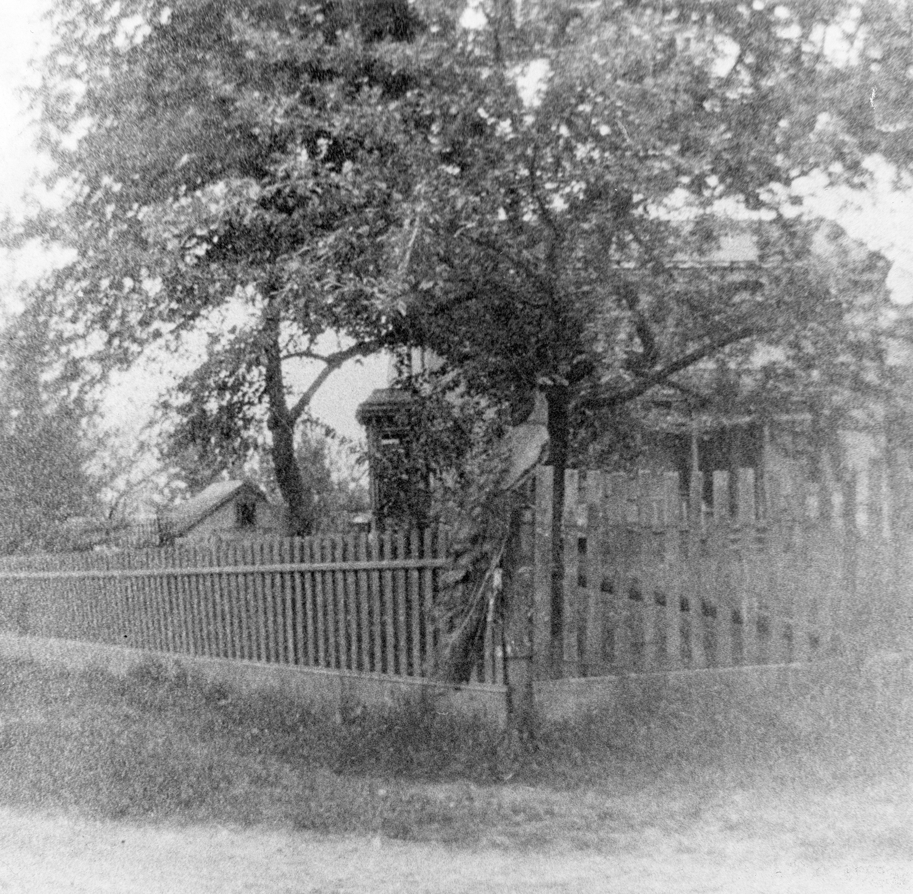 Photograph of a Peacock on the corner post of the Realy Farm.