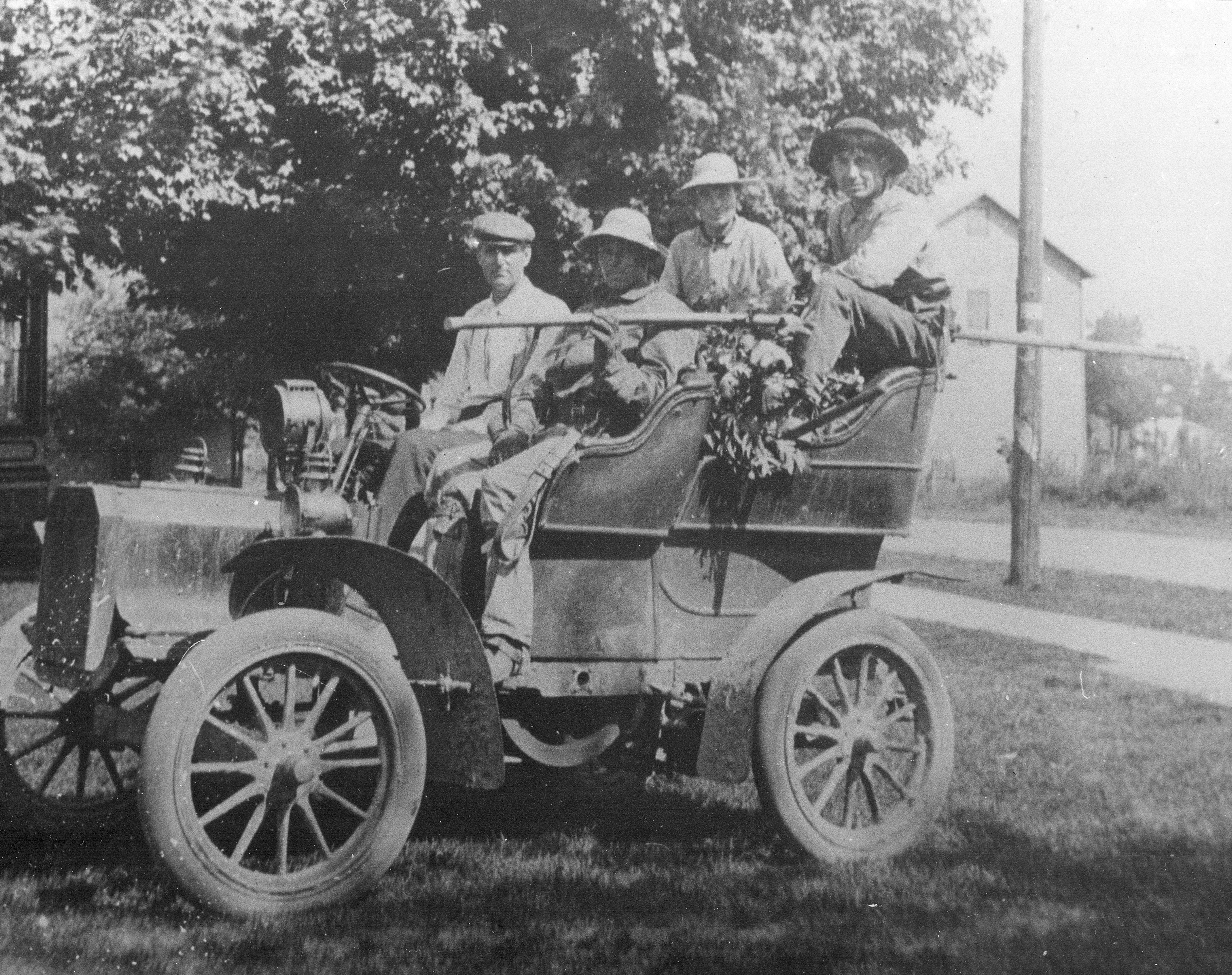 Photograph of workers, left to right Victor & Reuben Moeckel, Bill Barber and Lynn Gorton.