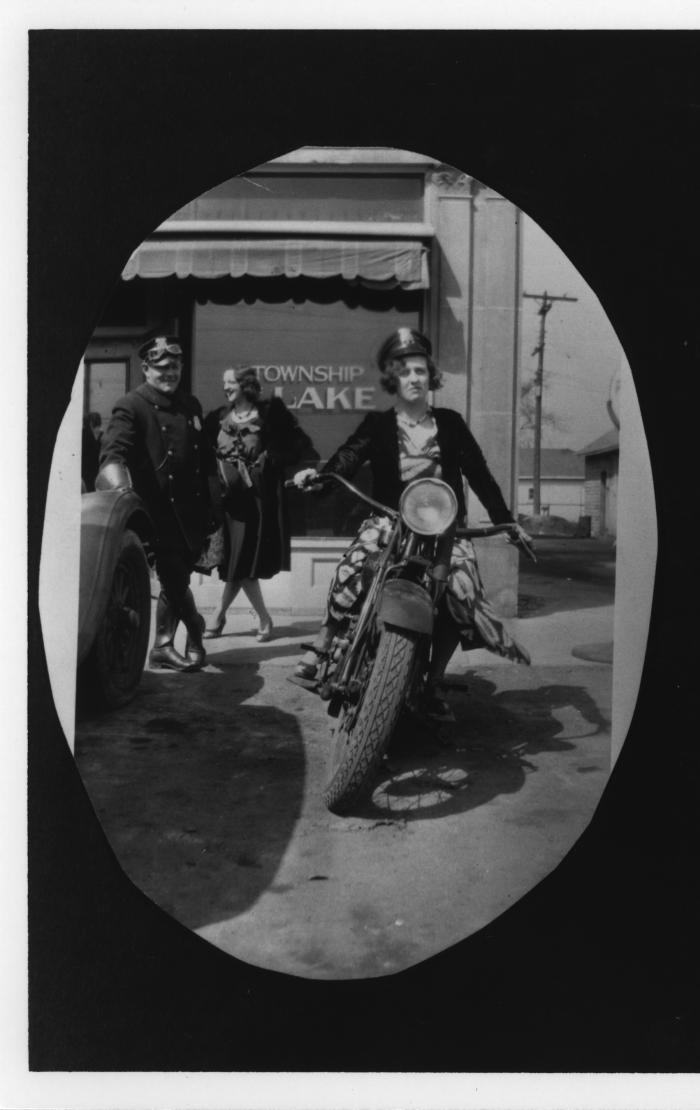 Officer Harold Landstra and friends by the Lake Township Police Station