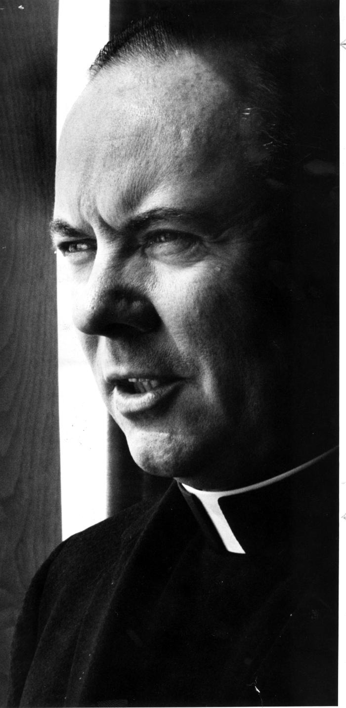 Close up of Father Leonard Partensky, founding pastor of St. Matthias Catholic Church, 12509 19 Mile Rd. in Sterling Heights, Michigan. Church founded in 1960, temporary church and rectory built in 1961, classrooms and convent built in 1966.