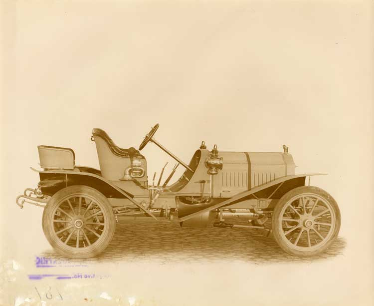 8x10 black and white sepia-toned photograph of a 1907 Packard 30 Model U right side view, light in color.