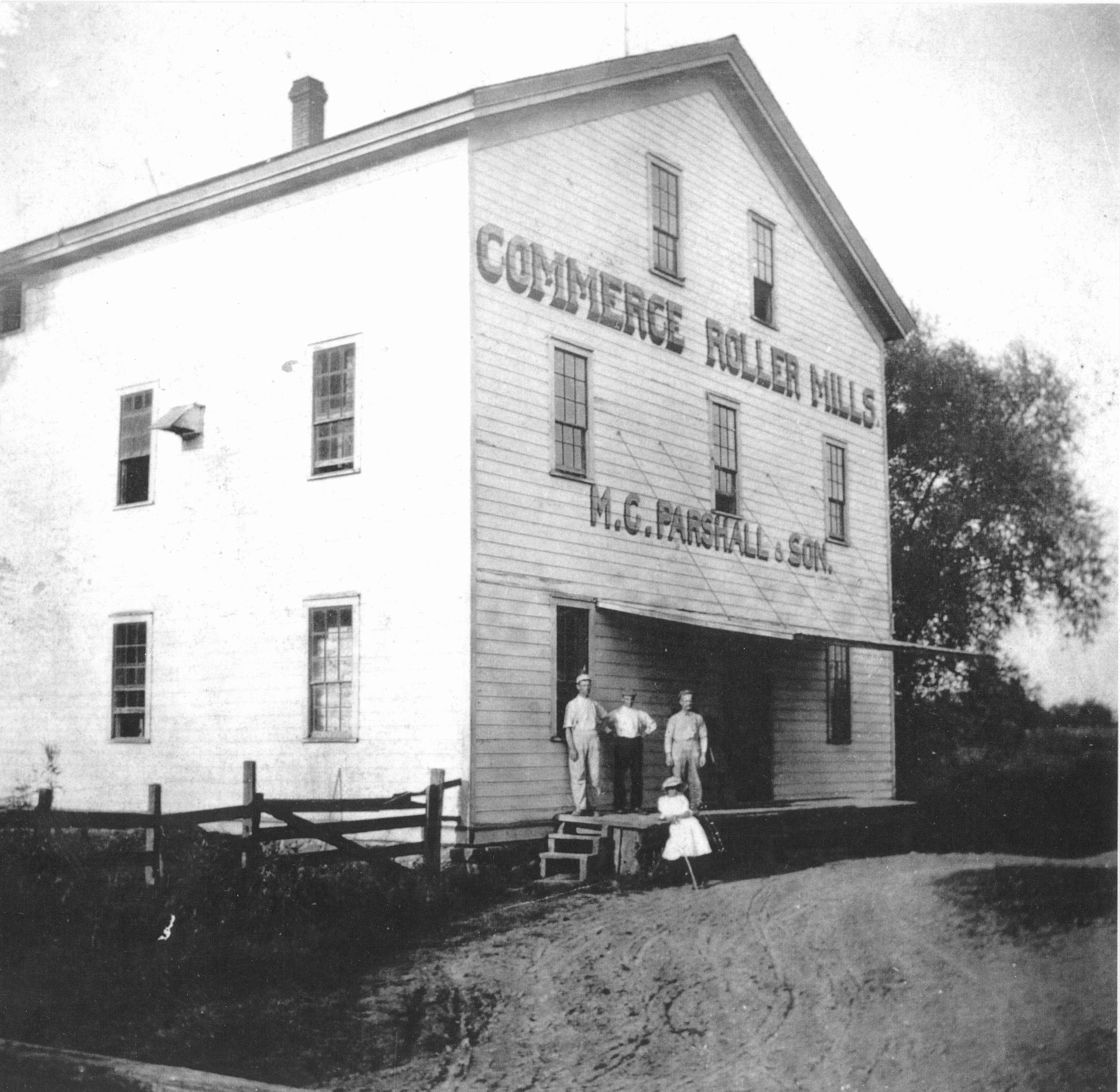 Black and white photograph of Commerce Roller Mills, Commerce Township, Michigan, c. 1910.