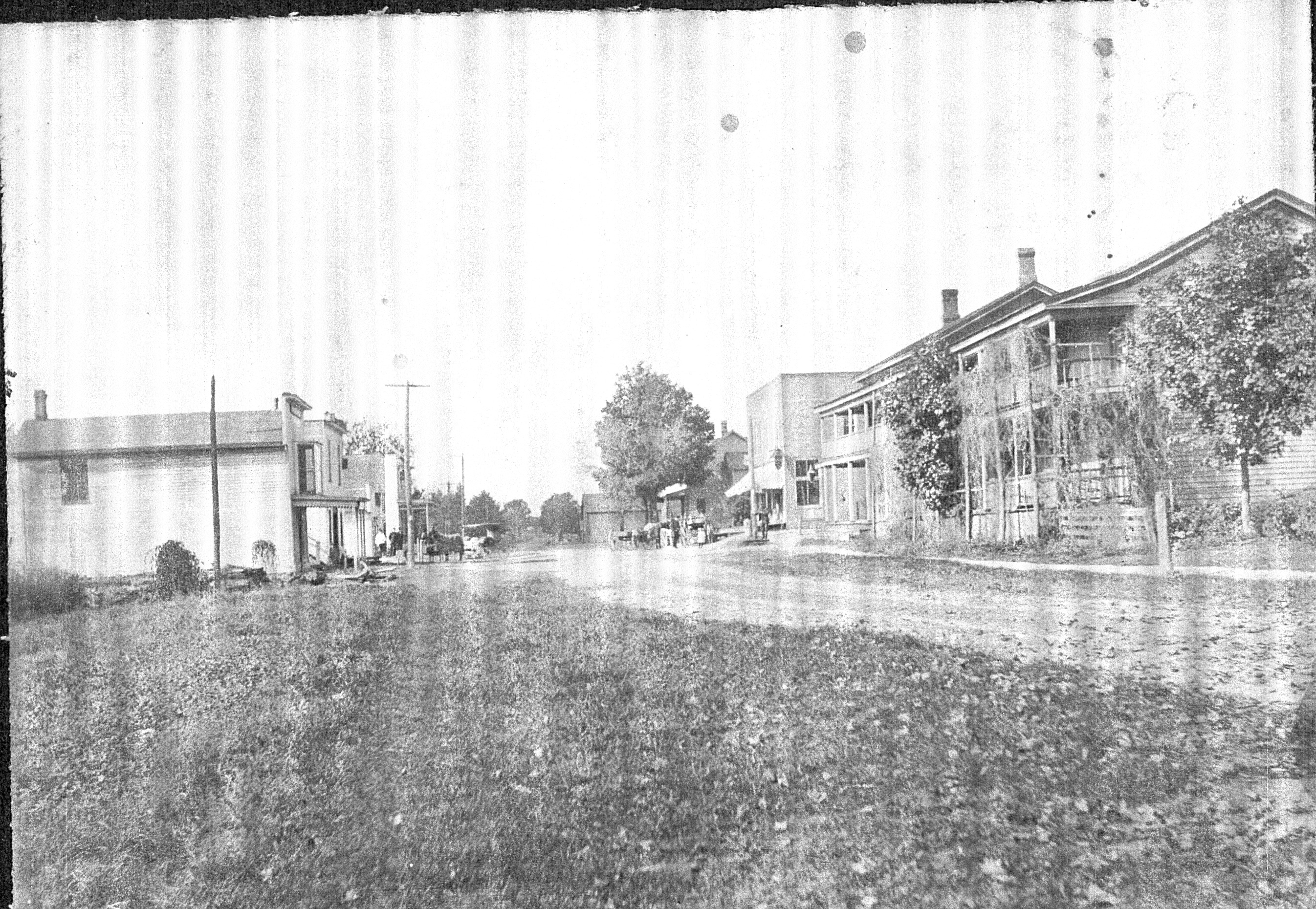 Photocopy of postcard showing Main Street, village of Walled Lake, 1900.
