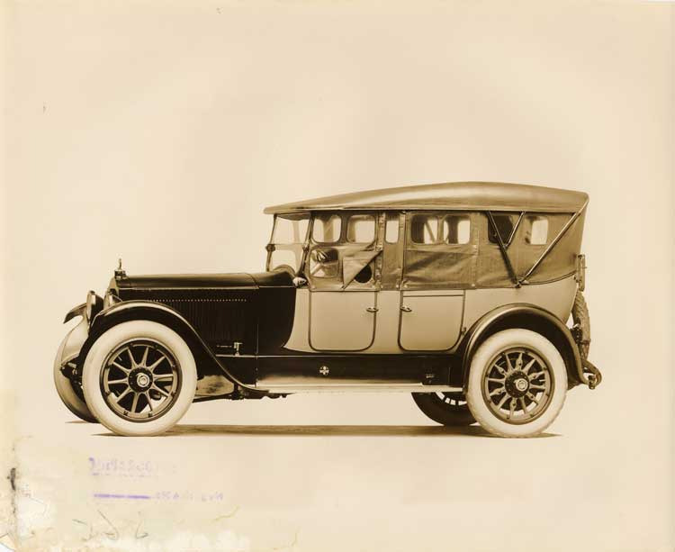 1911 Packard two-toned touring car with light colored folding top