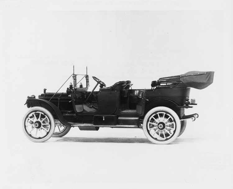 1911 Packard 30 Model UD touring car, three-quarter rear view, left side, top lowered