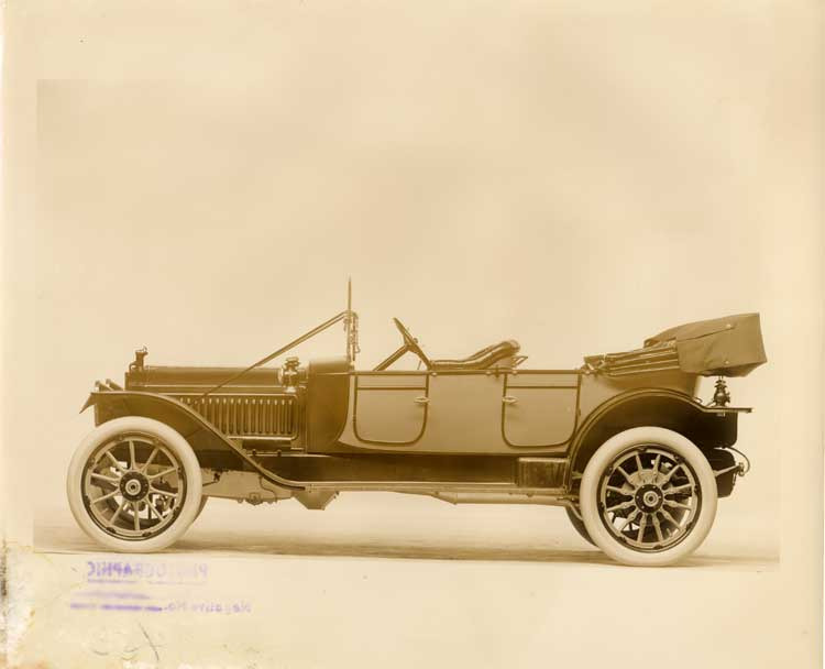 1912 two-toned Packard left side view, top lowered