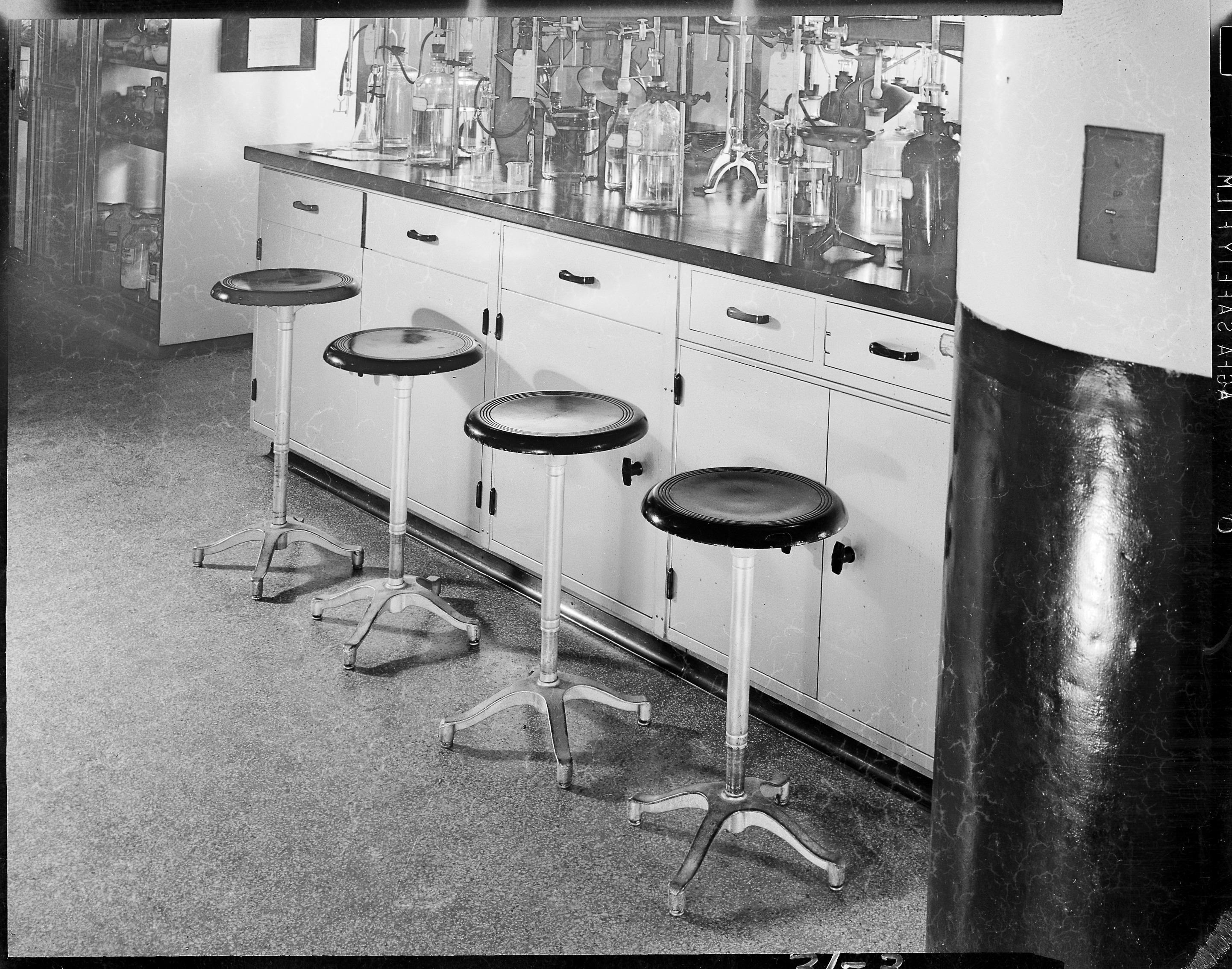 Industrial Scenes. Laboratory at Upjohn Company, Kalamazoo, Michigan. Client: Kewaunee Mgt. Company (Photographic negative)