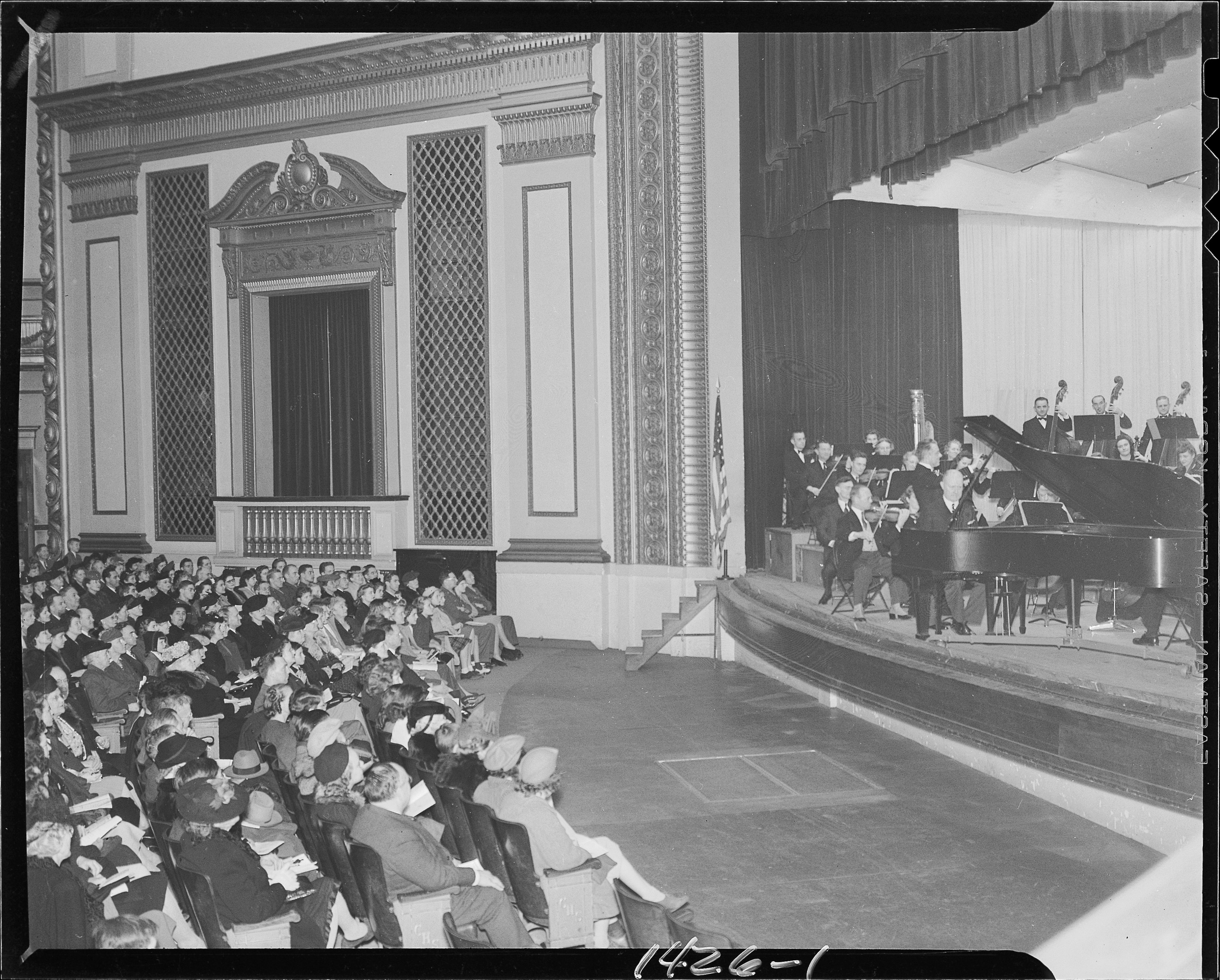 Events. View of Kalamazoo Symphony Orchestra performance and audience at Chenery Auditorium. Client: Kalamazoo Symphony Orchestra (Photographic Negative)