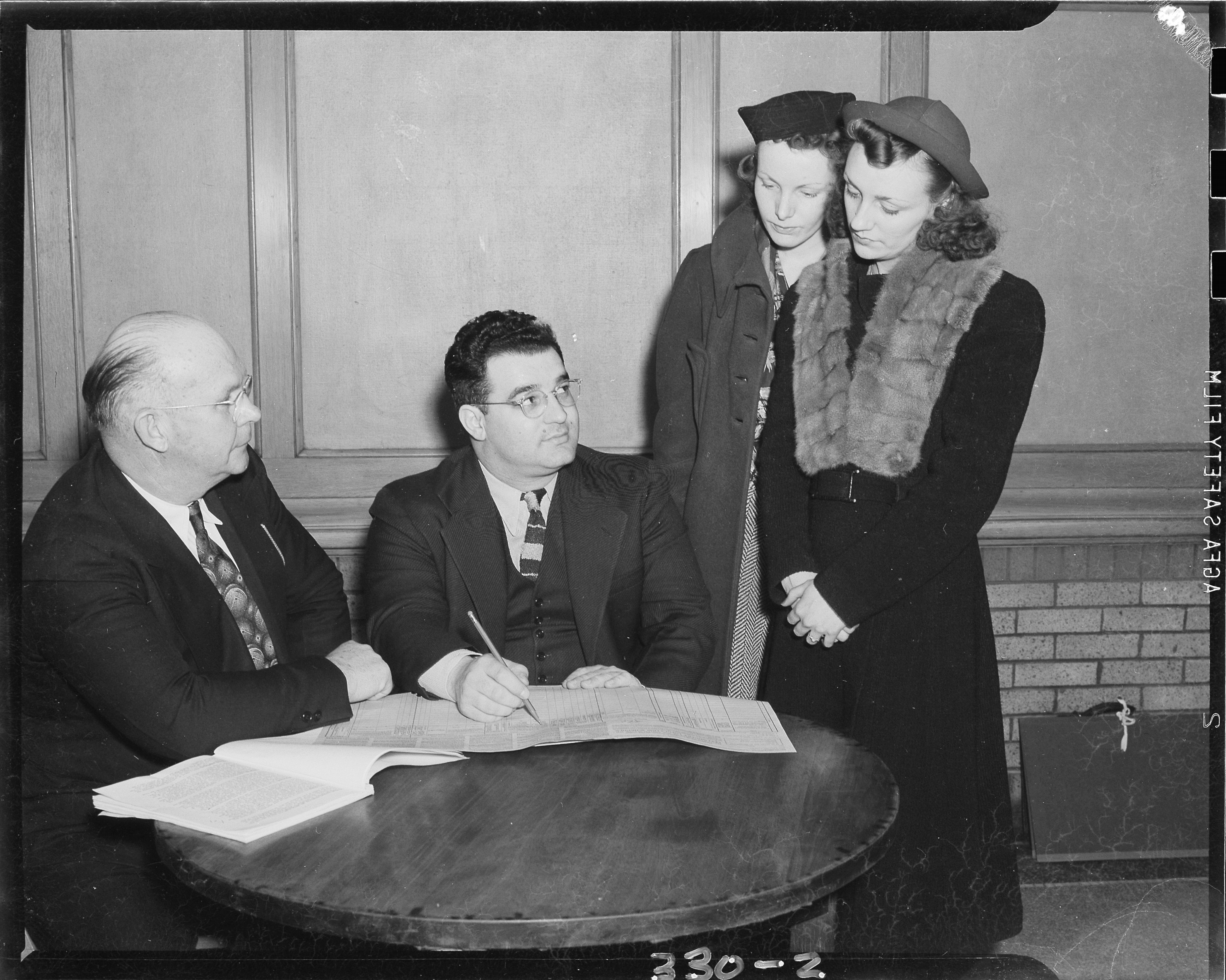 Events. Men and women in winter clothes taking down census information. Client: Kalamazoo Gazette (Photographic Negative)