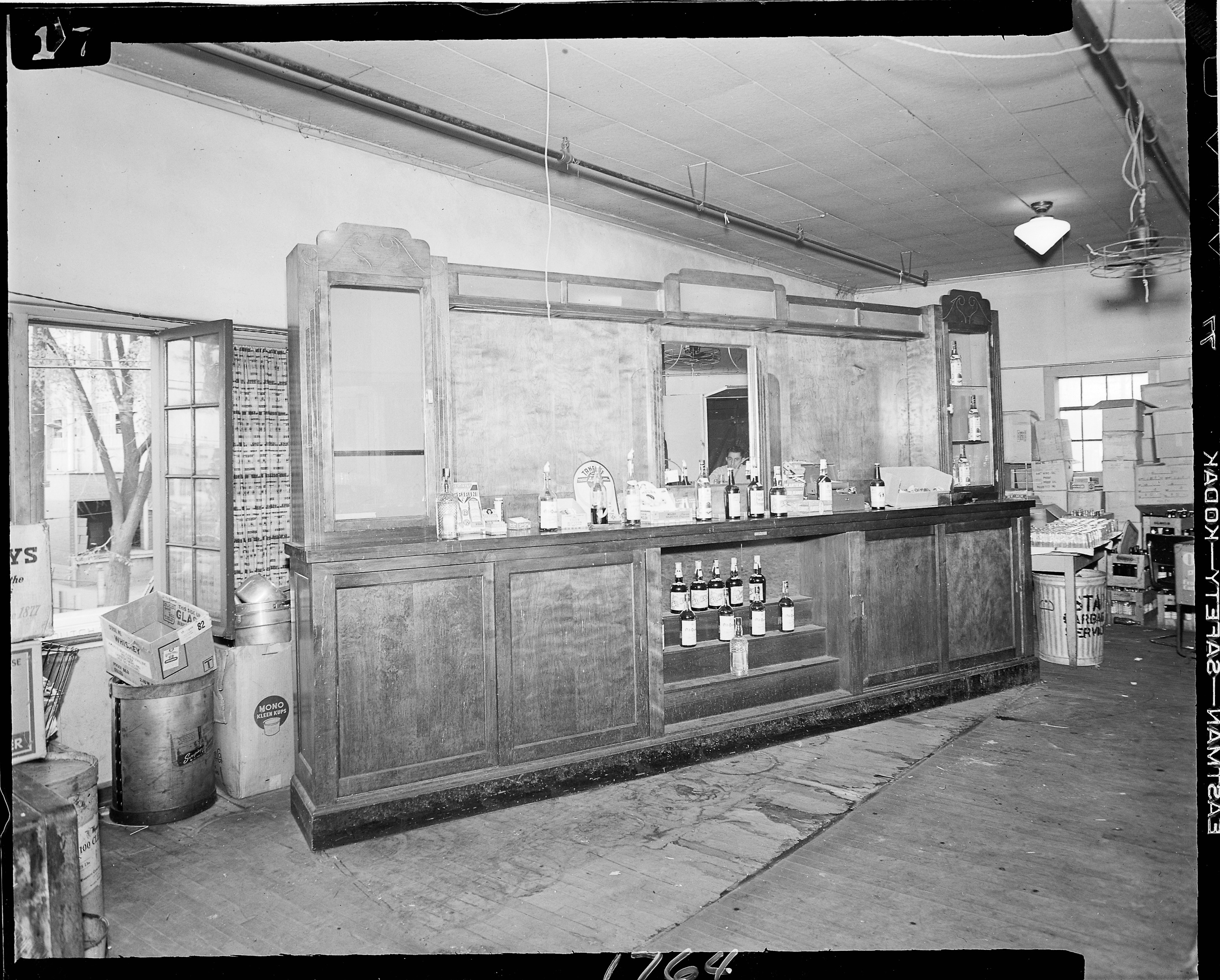 Business Scenes. Societies-Service Clubs. Fraternal Order of the Eagles, interior view of back bar at Lodge No. 526, 230 E. Kalamazoo Avenue. Client: Eagles Lodge (Photographic Negative)