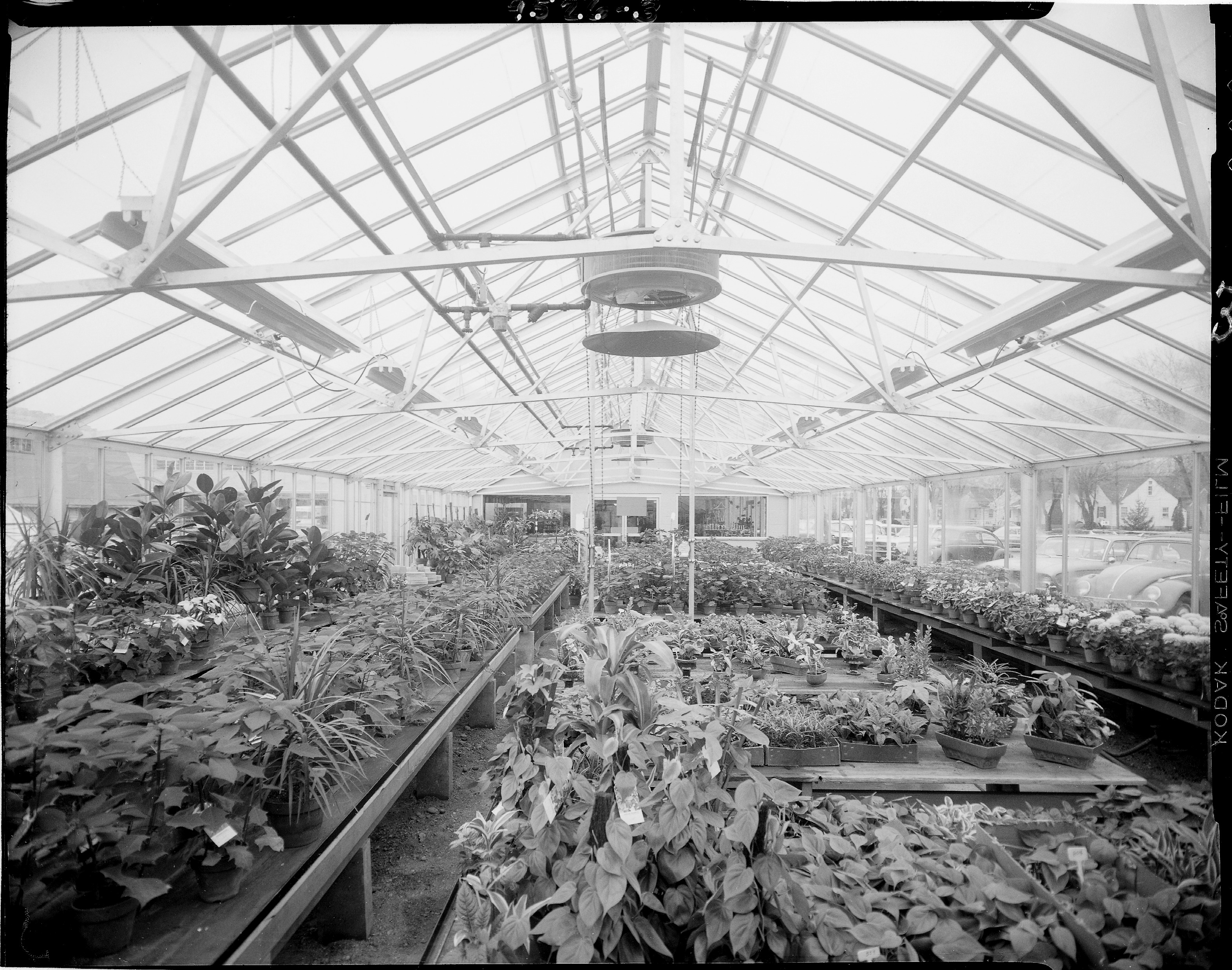 Business Scenes. Interior view of greenhouse, VanBochove & Bro., Inc., Wholesale and Retail Florists, 2301 Flower Street. Client: National Greenhouse Co., Pana, Illinois (Photographic Negative)