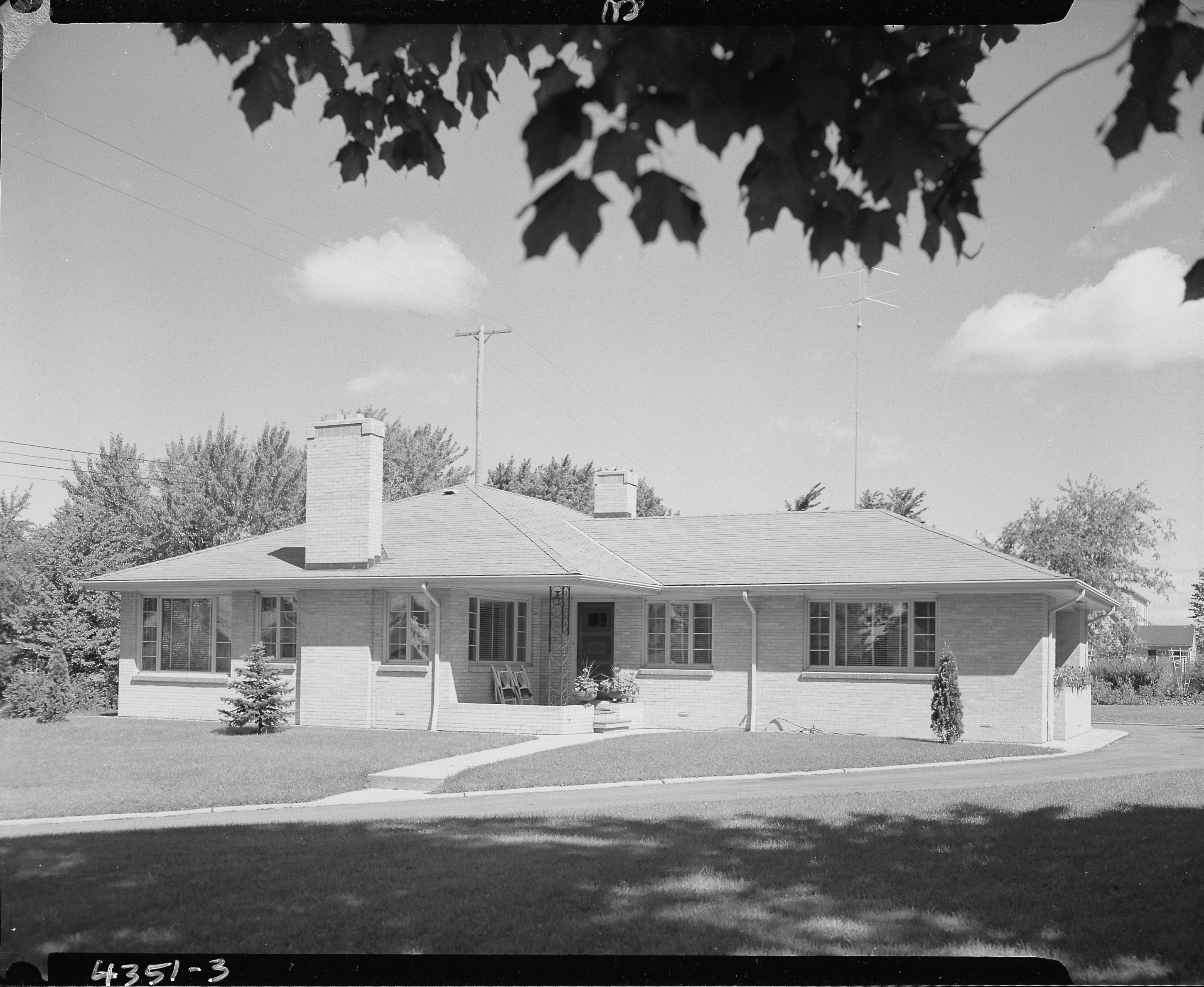Residential Scenes. Exterior of brick ranch style home. Client: Miller Lumber Company (Photographic Negative)