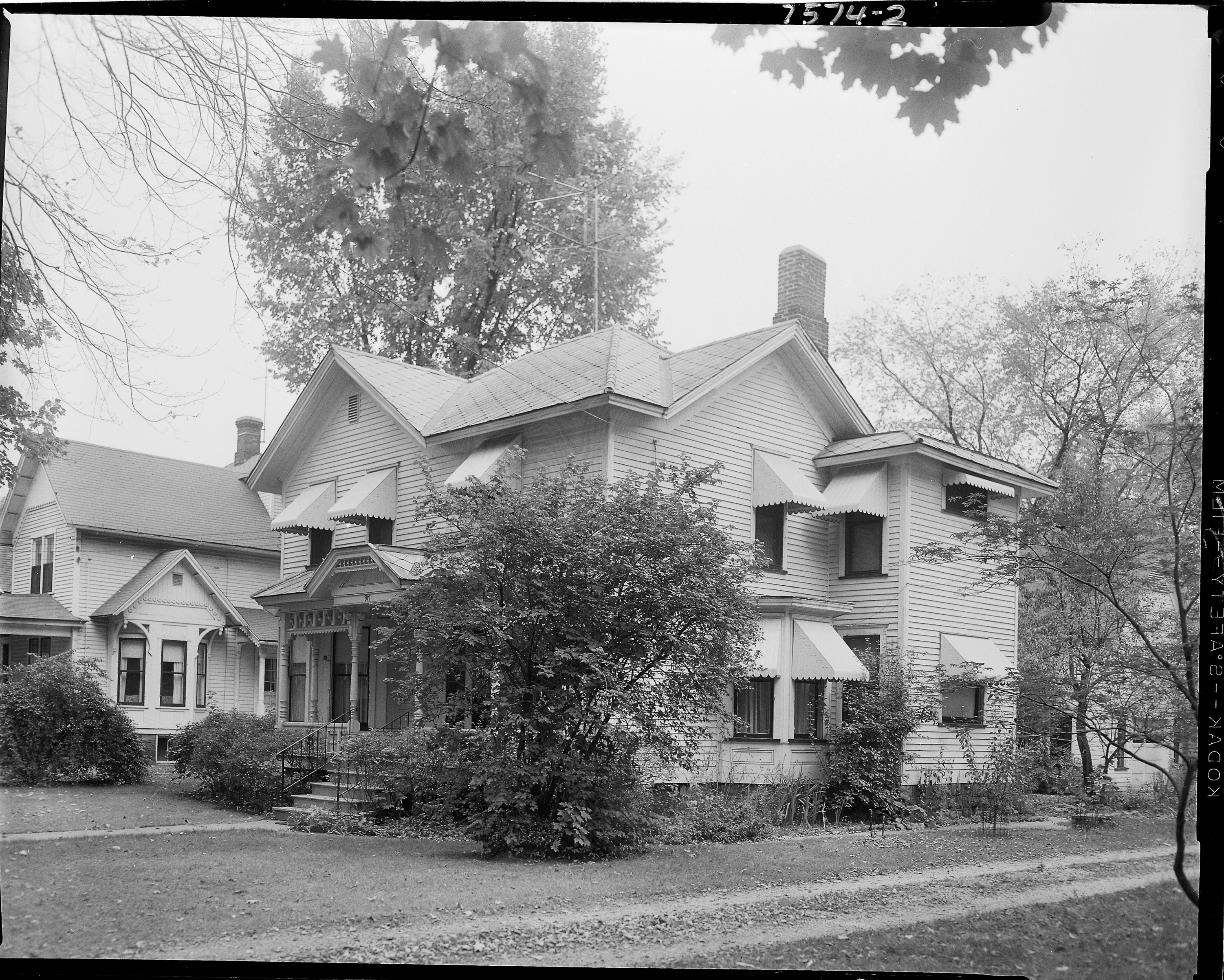 Residential Scenes. Two-story Queen Anne style house with awnings at 911 South Park Street. Partial view of south facade of 911 South Park Street visible. Client: Kalamazoo Artcraft (Photographic Negative)