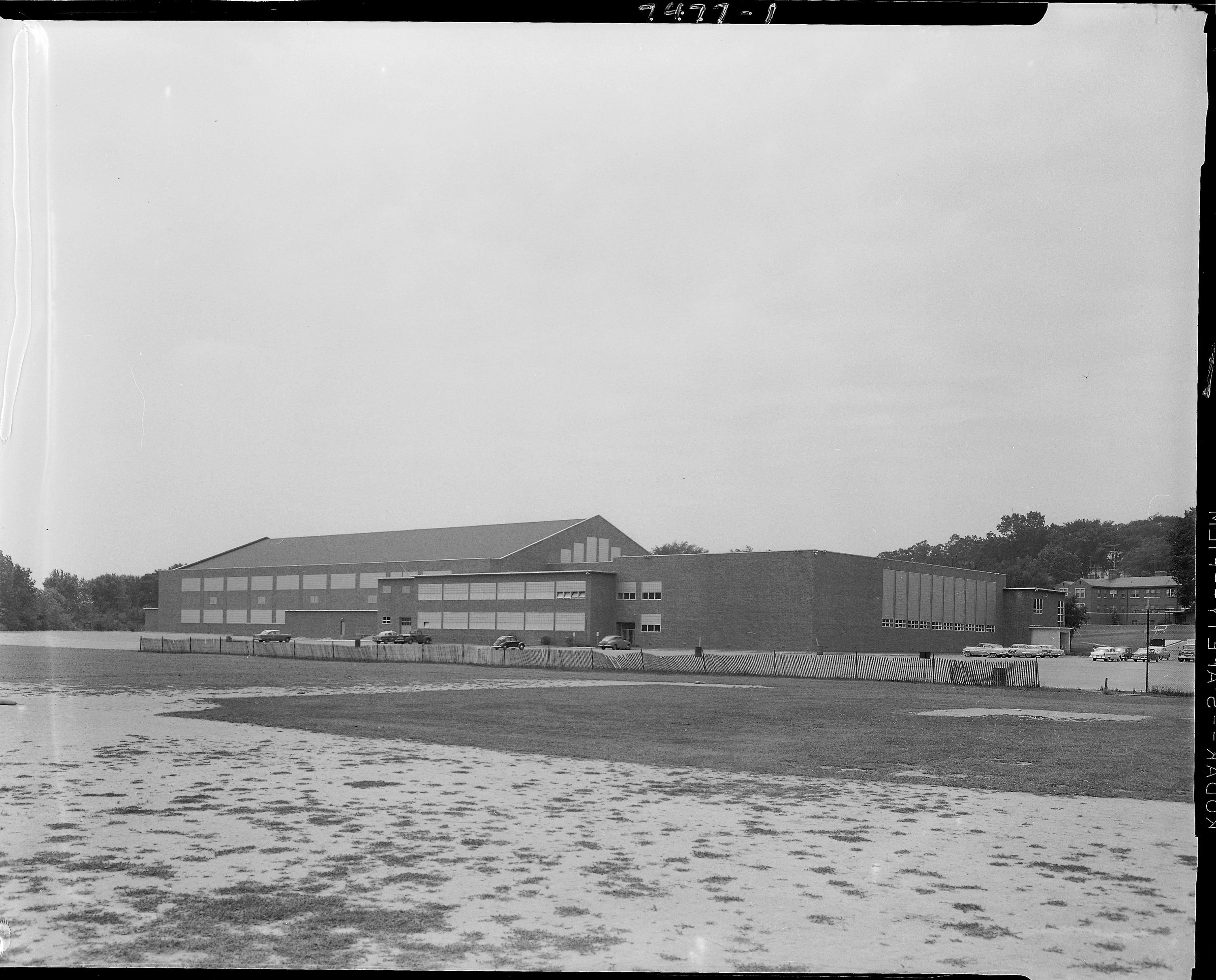 Education. East side of Read Field House, shortly after construction, Western Michigan University, Kalamazoo, Michigan. Client: Marmet Corporation (Photographic Negative)