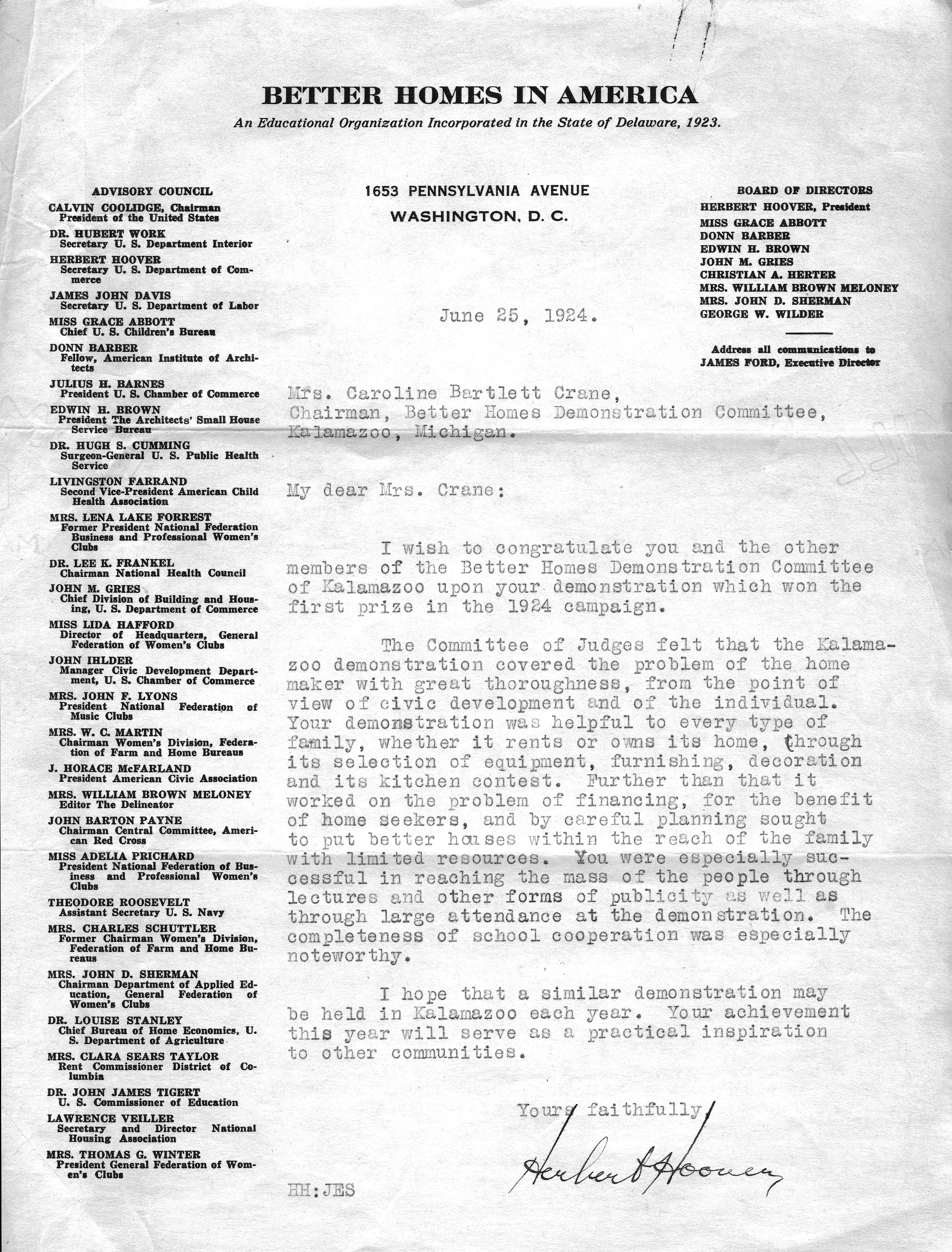 Letter of congratulations from Herbert Hoover