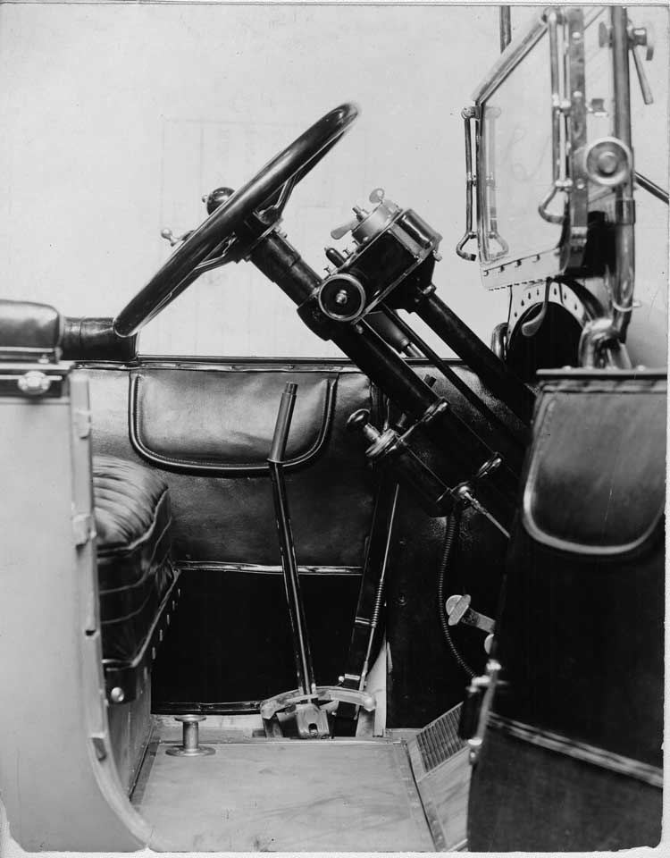 1914 Packard 2-38 touring car, front interior detail, right side door open