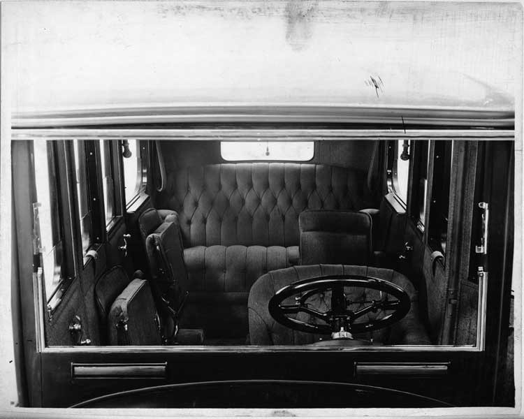 1914 Packard 2-38 salon limousine, front view of interior through windshield