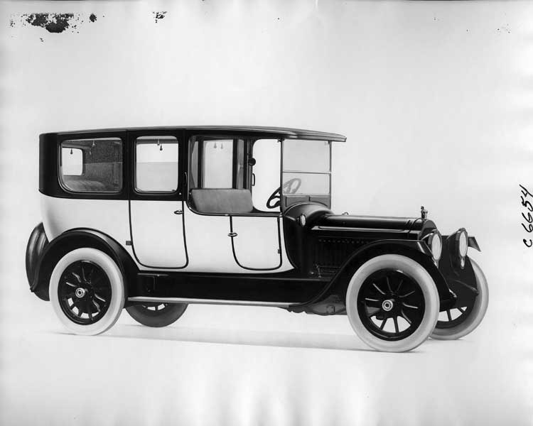 8x10 black and white Packard Co. file photograph of a 1917 Packard three-quarter right front view, two-toned, retouched photograph. Inscribed on photo back: Model 2-35, 6-person limousine.