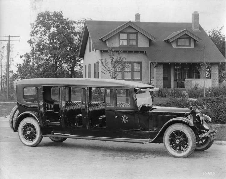 1920-1923 Packard special 5-door commuter bus parked on residential street