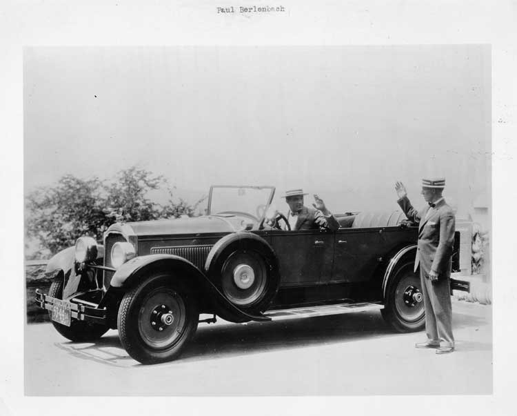 1926 Packard touring car, owner Paul Berlenbach waving to Packard salesman