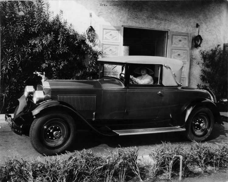 1928 Packard convertible coupe, owner Mrs. Joseph Urban behind wheel