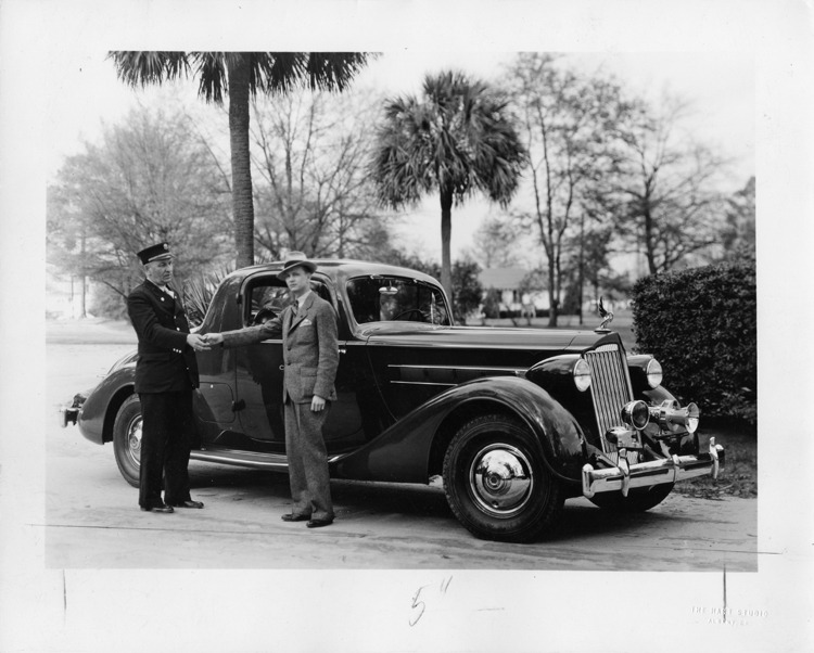 1936 Packard coupe, fire chief receiving keys