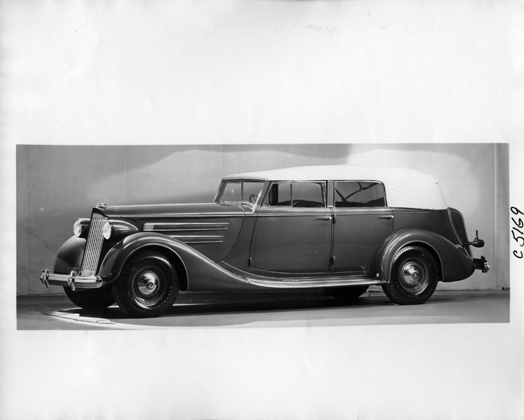 1937 Packard convertible sedan, nine-tenths left side view, top raised