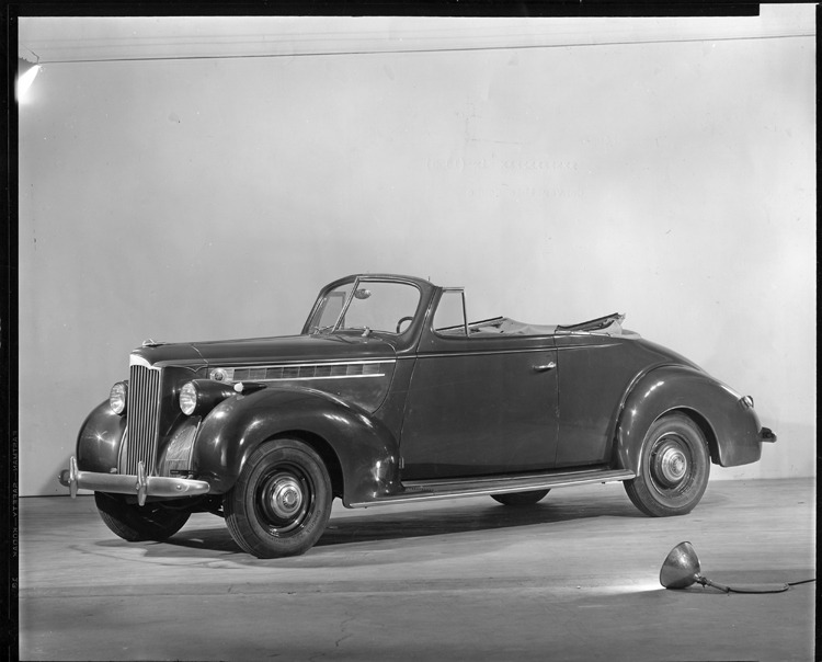 1940 Packard convertible coupe, nine-tenths left side view, top folded